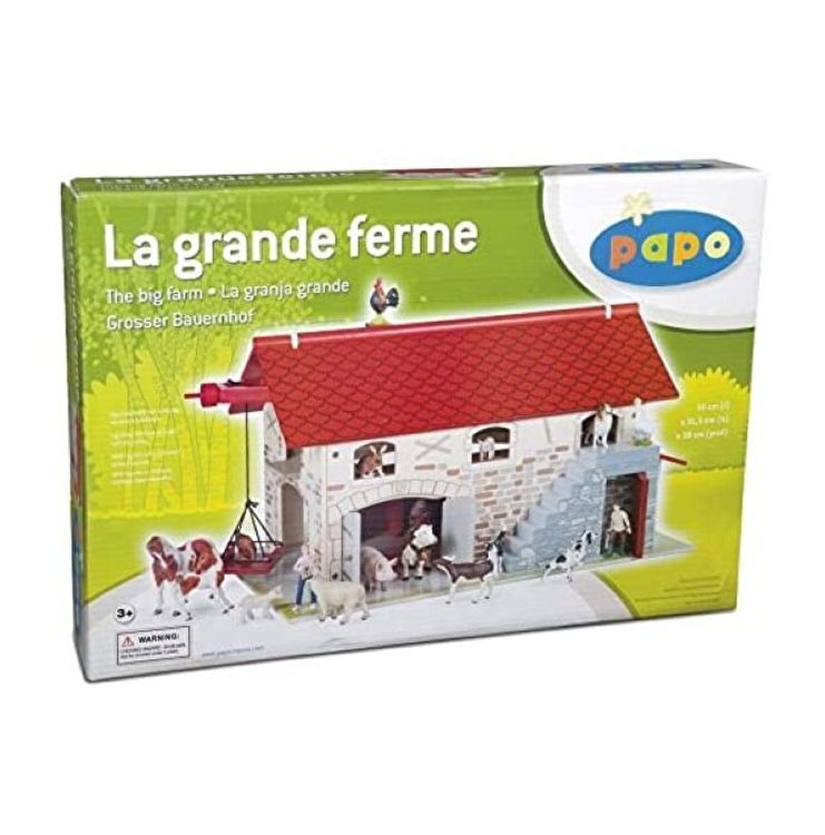 Ferma Papo are un acoperis detasabil pentru a fi usor de jucat. Un mediu distractiv din lemn pentru a te distra, a descoperi lumea fermei si a-ti imagina povesti frumoase.