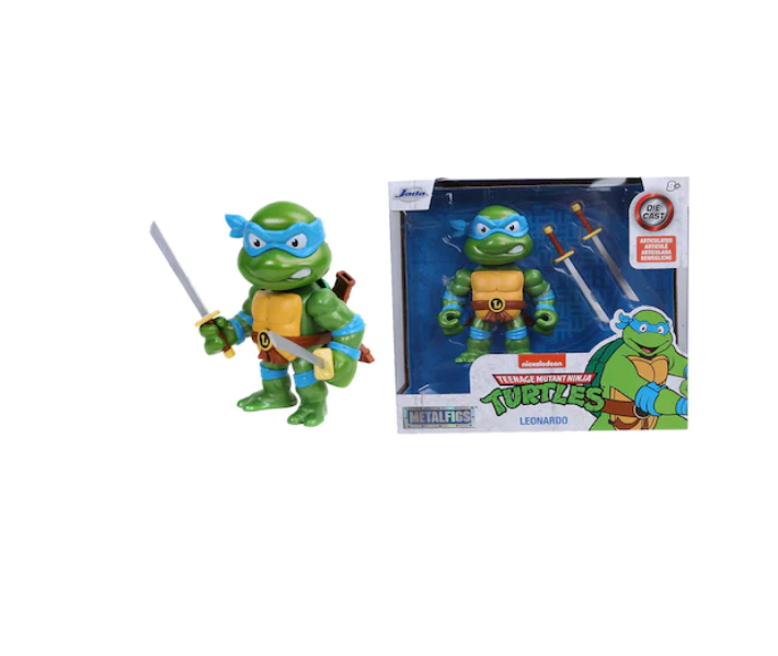 Figurina Leonardo, personajul din seria Testoasele Ninja, este prezent acum si sub forma de figurina metalica realizata la un grad inalt de calitate. Figurina are o inaltime de 10 cm si are incluse si accesoriile eroului. Are si articulatii si poate executa diferite miscari si pozitii.