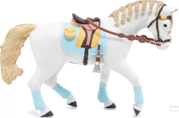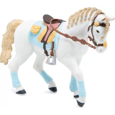 Faceti o plimbare prin campuri cu ecvinele Papo participati la concursuri de sarituri sau chiar la cursuri de dresaj. Calaretul foarte elegant imbracat in albastru si maro si-a pregatit calul in armonie cu tinuta ei. Saua albastra si maro benzile albastre coama impletita si benzile mici elastice tot de culoare albastra. Cert este primul loc al concursului de eleganta este pentru ei Produsul are urmatoarele dimensiuni 14. 5 x 5 x 9. 5cm si este recomandat copiilor cu varsta peste 3 ani. De mai bine de 20 de ani Papo inoveaza constant si ii face pe copii din intreaga lume sa viseze cu o gama bogata de peste 600 de produse reprezentand 12 lumi animale si personaje. De la modelul original la serie fiecare dintre figurinele Papo a fost conceputa si creata in Franta pentru a fi fabricata intr-o permanenta preocupare pentru calitate. Pictate manual atentia la detalii este acum recunoscuta. Figurinele Papo se disting prin acuratete si realism detaliile sunt de asa natura incat am putea crede ca se vor pune in miscare.Specificatii