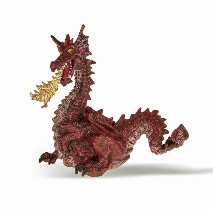 Cu figurinele lumii fermecate descopera un univers de magie in care printesele se misca pe spatele lui Pegas si in care zanele se joaca cu spiridusii padurii. Cu ochii sai de culoarea focului si flacarile lungi care curg dintr-o gura echipata cu dinti ascutiti dragonul rosu este o creatura terifianta si foloseste asta pentru a speria orice atacatori care incearca sa atace castelul in nori. Produsul are urmatoarele dimensiuni 11. 9 x 5. 5 x 10. 3 cm si este recomandat copiilor cu varsta peste 3 ani. De mai bine de 20 de ani Papo inoveaza constant si ii face pe copii din intreaga lume sa viseze cu o gama bogata de peste 600 de produse reprezentand 12 lumi animale si personaje. De la modelul original la serie fiecare dintre figurinele Papo a fost conceputa si creata in Franta pentru a fi fabricata intr-o permanenta preocupare pentru calitate. Pictate manual atentia la detalii este acum recunoscuta. Figurinele Papo se disting prin acuratete si realism detaliile sunt de asa natura incat am putea crede ca se vor pune in miscare.Specificatii