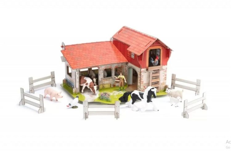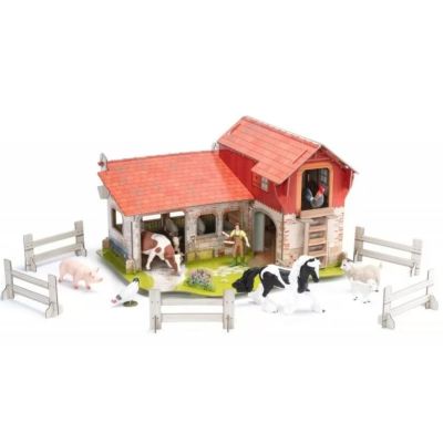 Cu figurinele universului fermei trezeste-te cu cantatul cocosului mergi sa hranesti animalele si ridica fructele si legumele gradinii de legume. Ferma ofera scena perfecta pentru jocul imaginativ al fermei cu colectia de figurine de ferma existenta deoarece Ferma este locul perfect pentru a trai si a lucra pentru fermieri calareti vaci cai oi porci gaini si multe altele. Aceasta structura de carton este usor de asamblat deoarece urechile de pe pereti si podele se introduc in fante in piesele de aliniere si prezinta un model rosu alb si caramida cu cinci bucati de gard albe si o baza verde cu iarba. Figurile pot sta la un nivel mai inalt la tarabe sau la nivelul solului pentru a pasuna in iarba. Produsul are urmatoarele dimensiuni 53. 5 x 3. 4 x 37. 3 cm si este recomandat copiilor cu varsta peste 3 ani. De mai bine de 20 de ani Papo inoveaza constant si ii face pe copii din intreaga lume sa viseze cu o gama bogata de peste 600 de produse reprezentand 12 lumi animale si personaje. De la modelul original la serie fiecare dintre figurinele Papo a fost conceputa si creata in Franta pentru a fi fabricata intr-o permanenta preocupare pentru calitate. Pictate manual atentia la detalii este acum recunoscuta. Figurinele Papo se disting prin acuratete si realism detaliile sunt de asa natura incat am putea crede ca se vor pune in miscare.Specificatii