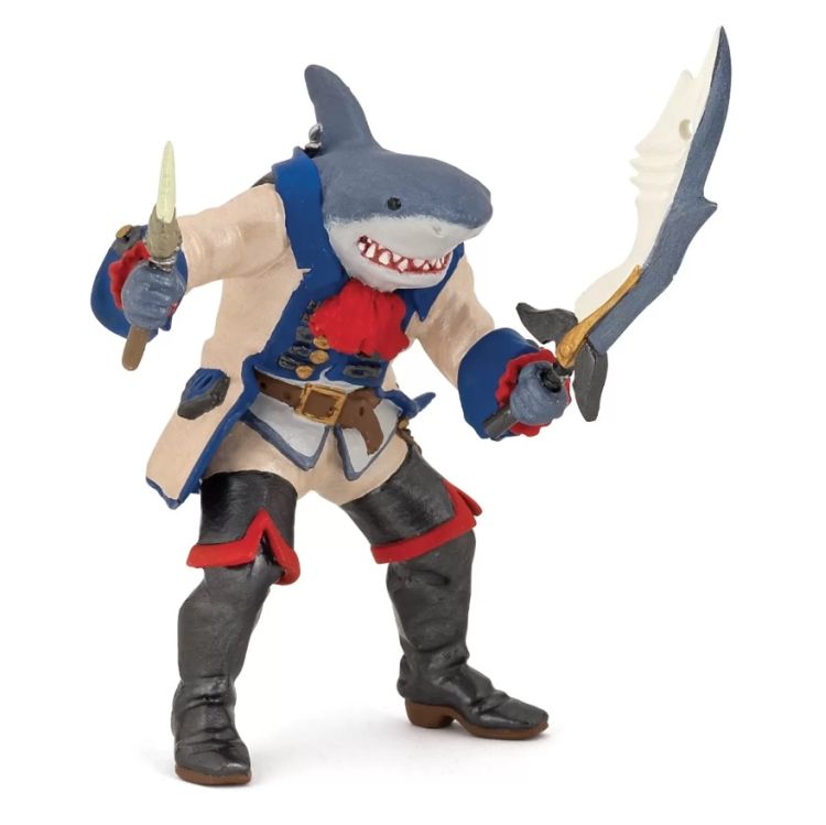 Navigati pe mari in cautarea comorilor pierdute. Rechinul este un pradator oceanic mortal iar piratul rechin a mostenit toate abilitatile sale. Cu dintii sai ascutiti si cu o viteza uluitoare nu scapa mare lucru. Produsul are urmatoarele dimensiuni 7. 5 x 8. 5 x 11 cm si este recomandat copiilor cu varsta peste 3 ani. De mai bine de 20 de ani Papo inoveaza constant si ii face pe copii din intreaga lume sa viseze cu o gama bogata de peste 600 de produse reprezentand 12 lumi animale si personaje. De la modelul original la serie fiecare dintre figurinele Papo a fost conceputa si creata in Franta pentru a fi fabricata intr-o permanenta preocupare pentru calitate. Pictate manual atentia la detalii este acum recunoscuta. Figurinele Papo se disting prin acuratete si realism detaliile sunt de asa natura incat am putea crede ca se vor pune in miscare.Specificatii