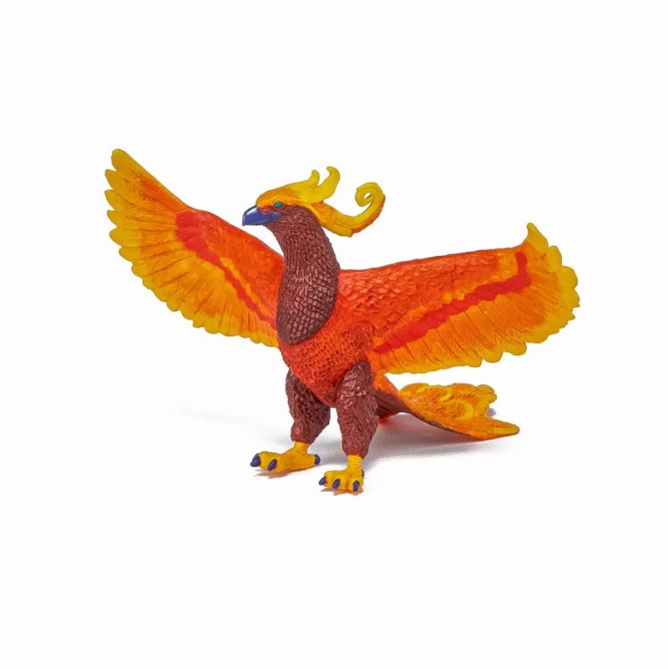 Cu figuri fantastice ale lumii vei calaretui dragoni vei lupta alaturi de orci si centauri si vei lupta impotriva puternicului minotaur. Cu figurinele lumii medievale traiesc batalii epice apara-ti regatul impotriva inamicului sau infrunta cavaleri intr-un duel. Jucarie educationala realizata manual excelent pictata si poate fi colectionata de catre copii sau adaugata la seturile de joaca cum ar fi pirati printese etc. Un excelent stimulent pentru a extinde imaginatia copiilor dezvoltand multe oportunitati de joaca. Figurina Papo Phoenix este fabricata dintr-un plastic special care isi pastreaza calitatile mult timp putand fi transmisa si generatiei urmatoare. Nu contine substante toxice. Produsul are urmatoarele dimensiuni 11. 5 x 13 x 6. 5 cm si este recomandat copiilor cu varsta peste 3 ani. De mai bine de 20 de ani Papo inoveaza constant si ii face pe copii din intreaga lume sa viseze cu o gama bogata de peste 600 de produse reprezentand 12 lumi animale si personaje. De la modelul original la serie fiecare dintre figurinele Papo a fost conceputa si creata in Franta pentru a fi fabricata intr-o permanenta preocupare pentru calitate. Pictate manual atentia la detalii este acum recunoscuta. Figurinele Papo se disting prin acuratete si realism detaliile sunt de asa natura incat am putea crede ca se vor pune in miscare.Specificatii
