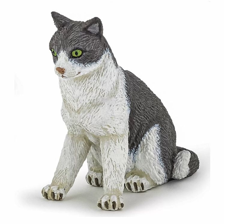 Indiferent daca preferati cainii sau pisicile acestia sunt insotitori excelenti mereu gata sa se joace sau sa iasa la plimbare. Pisica noastra este alba si gri cu ochi mari verzi deschis. Produsul are urmatoarele dimensiuni 2. 3 x 5 x 7cm si este recomandat copiilor cu varsta peste 3 ani. De mai bine de 20 de ani Papo inoveaza constant si ii face pe copii din intreaga lume sa viseze cu o gama bogata de peste 600 de produse reprezentand 12 lumi animale si personaje. De la modelul original la serie fiecare dintre figurinele Papo a fost conceputa si creata in Franta pentru a fi fabricata intr-o permanenta preocupare pentru calitate. Pictate manual atentia la detalii este acum recunoscuta. Figurinele Papo se disting prin acuratete si realism detaliile sunt de asa natura incat am putea crede ca se vor pune in miscare.