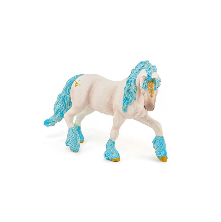 Cu figurinele lumii fermecate descopera un univers de magie in care printesele se misca pe spatele lui Pegas si in care zanele se joaca cu spiridusii padurii. O creatura legendara. Aspectul unicornului nostru este modern asemanator puternic cu un cal alb cu un singur corn pe frunte coama si parul din coada prezentand culori fantastice irizate. Produsul are urmatoarele dimensiuni 17 x 6. 5 x 9. 8 cm si este recomandat copiilor cu varsta peste 3 ani. De mai bine de 20 de ani Papo inoveaza constant si ii face pe copii din intreaga lume sa viseze cu o gama bogata de peste 600 de produse reprezentand 12 lumi animale si personaje. De la modelul original la serie fiecare dintre figurinele Papo a fost conceputa si creata in Franta pentru a fi fabricata intr-o permanenta preocupare pentru calitate. Pictate manual atentia la detalii este acum recunoscuta. Figurinele Papo se disting prin acuratete si realism detaliile sunt de asa natura incat am putea crede ca se vor pune in miscare.Specificatii