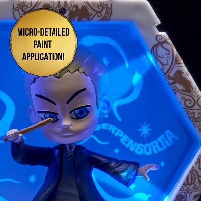 Fiecare personaj este situat in propriul POD in forma de hexagon cu lumini UV si senzor IR incorporat. Pur si simplu miscati mana peste senzor pentru a lumina WOW-ul POD-ul Misca-ti mana in fata POD-ului pentru a-l lumina si a dezvalui pictograme ascunse in spatele WOW Pod-ului Lumina se stinge automat dupa 30 de secunde. Conectati-le in cateva secunde Colectia ta poate lua diferite forme si avea in fiecare zi alt look Limita e doar de imaginatia ta Puteti chiar sa va scrieti numele sau initialele pentru a crea un afisaj care este fara indoiala si unic al dvs. Colectionati si conectati personajele favorite printr-o colectie mai vasta de eroi WOW PODS Sunt disponibile personaje Marvel DC Disney Disney Frozen Sonic Jurassic World Harry Potter Minionii si altele. Acest pachet contine personajul Draco.Specificatii