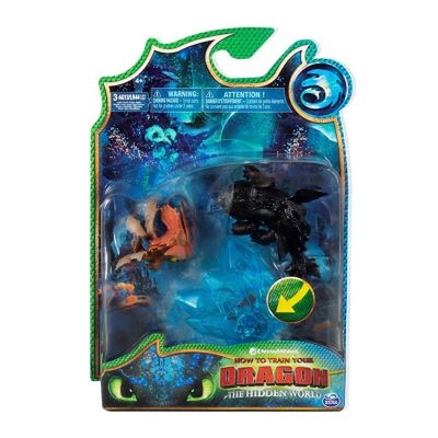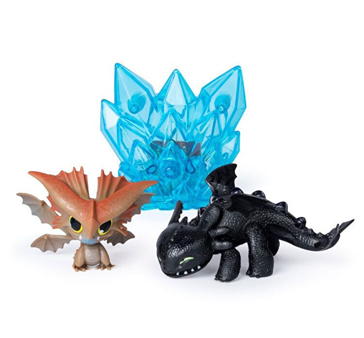 Cate doua personaje preferate din filmul Cum sa-ti antrenezi dragonul 3. Apasati butonul de pe partea laterala a cristalului pentru a activa lumina UV. Du-l la dragon pentru a vedea ca desenele sale bioluminescente apar magic! Mini dragoni sunt potriviti pentru mana sau buzunar, astfel incat sa le puteti lua cu dvs. peste tot! Colectati doi dragoni diferiti in fiecare set si un cristal din spate, care vine in mai multe culori diferite.