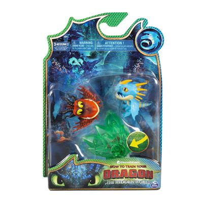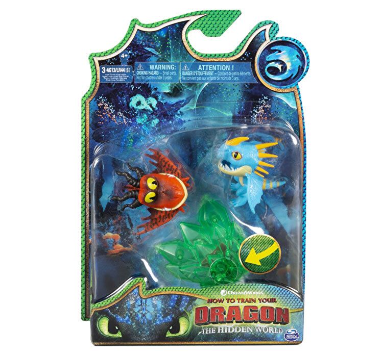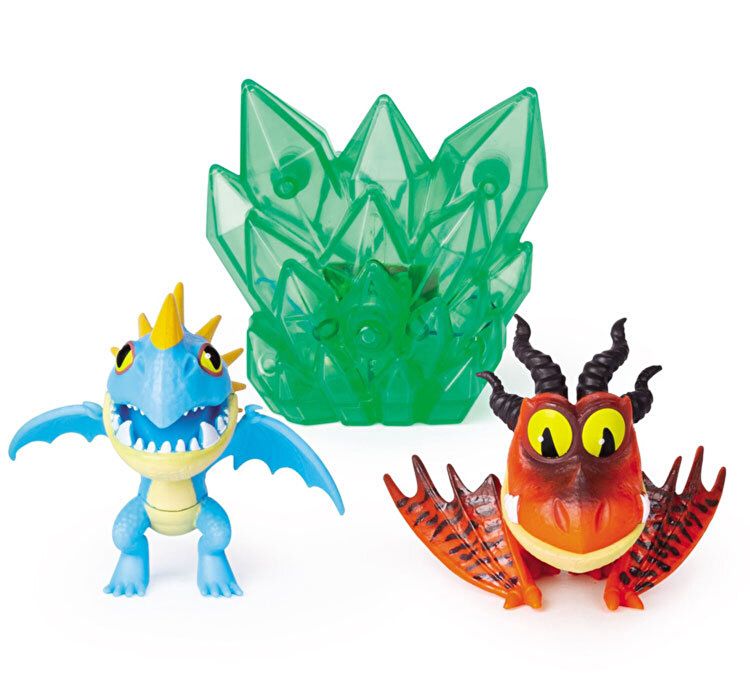 Cate doua personaje preferate din filmul Cum sa-ti antrenezi dragonul 3. Apasati butonul de pe partea laterala a cristalului pentru a activa lumina UV. Du-l la dragon pentru a vedea ca desenele sale bioluminescente apar magic! Mini dragoni sunt potriviti pentru mana sau buzunar, astfel incat sa le puteti lua cu dvs. peste tot! Colectati doi dragoni diferiti in fiecare set si un cristal din spate, care vine in mai multe culori diferite.