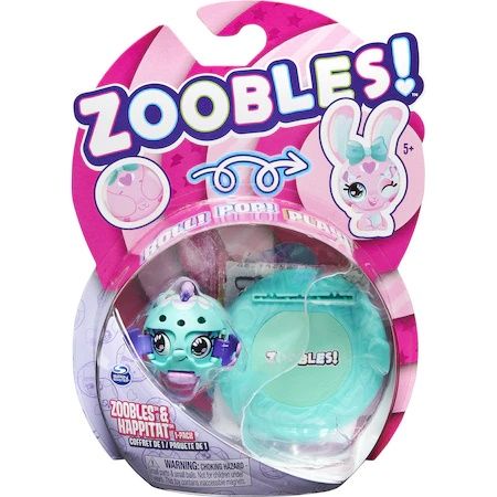 Fiecare jucarie pentru copii Zoobles Animal are modele si detalii in culori vibrante si fiecare are propriul stil si infatisare. Descopera personale precum Crystal Narwhal, Sparkelle, Kawaii Bunny cel stralucitor, Hoppy Heartz; Hip Hop Panda neon, Bam Bae si multi altii. Fundalul Happitat-ului este perfect pentru jocurile tale creative. Fiecare fundal se asorteaza stilului animalului sau si are un element 3D diferit care se misca si te ajuta sa creezi noi moduri de joaca. Printre ele se numara un reflector, un uscator de par, un cuptor si multe altele. Pentru si mai multe moduri de a te juca, niciun Animal Zoobles nu este fericit fara obraznica sau draguta prietena cea mai buna Z-Girlz!
