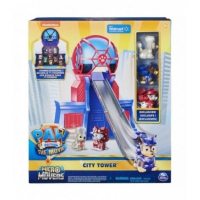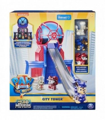 Joaca si afiseaza-ti figurinele PAW Patrol The Movie Micro Movers cu City Tower! Acest turn arata exact ca cel de pe marele ecran, scalat pentru a se potrivi figurilor Micro Movers PAW Patrol. City Tower include trei figuri exclusive Micro Movers ale lui Chase, Marshall si Dolores care se potrivesc in palma mainii tale! Fiecare figurina are detalii autentice si un finisaj perlat, facandu-le complementul perfect pentru colectia ta. Aceste figurine PAW Patrol de dimensiuni mici au o minge in partea de jos, ceea ce face usor sa-ti rostogolesti personajele in timpul aventurilor tale. Trageti rampa de salvare din partea din fata a turnului, apoi lansati-va figurinele si alergati spre salvare! Cand ati terminat de jucat, City Tower poate afisa si stoca pana la 11 figuri in interior. Cu atat de multe figurine Micro Movers de colectat, inclusiv pui, pisici, personaje umane plus rare si ultra rare, adauga-le pe toate in colectia ta (fiecare vandut separat)! Jucariile PAW Patrol Micro Movers City Tower si Mystery Figures pentru baieti si fete sunt un cadou grozav pentru copiii de la 3 ani in sus. Aduceti acasa microfilme de actiune cu PAW Patrol The Movie Micro Movers City Tower!