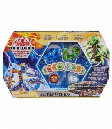 Cutia Bakugan - Faction Face Off Sezonul 3 este o cutie gata de joc si transportabila pentru a descoperi multitudinea de puteri Bakugan si a putea concura peste tot. Arena oficiala de lupta va permite sa va cufundati si mai mult in atmosfera desenului animat. Arena din material pliabil, cu o latime de aproximativ 60 cm. Setul contine 2 Bakugani exclusivi si 2 Geogani inclusi pentru batalii epice, 2 carti Portal, 2 carti de caracter, 2 carti de maiestrie, precum si 4 placi BakuCore.