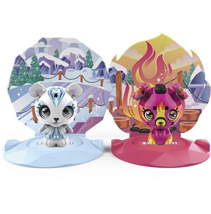 Zoobles isi iubesc opusul! Aceste Animale Zoobles sunt cele mai bune prietene si cel mai simpatic duo opus, precum dragut si infricosator, foc si gheata si multe alte combinatii. Setul cu 2 Zoobles si Happitat contine doua caractere Zoobles Animal cu tematici opuse, doua Happitat-uri potrivite cu fundal tematic si o lista pentru a tine usor evidenta colectiei tale de Opusi Obsedati. Fiecare Zoobles Animal este la inceput o bila colorata care se transforma intr-un animal foarte adorabil atunci cand o rostogolesti pe Happital-ul corespunzator. Pentru a activa transformarea uimitoare a figurinei, pur si simplu rostogoleste bila peste punctul de metal de pe Happitat si vei afla care este Animalul tau Zoobles! Este foarte distractiv! Apasa in jos pentru a readuce personajul in forma de bila, apoi rostogoleste-o din nou si transforma bila in animal de cate ori vrei! Fiecare jucarie Zoobles Animal pentru copii are modele si detalii in culori vibrante si fiecare pereche de Opusi Obsedati este in contrast perfect. Descopera personaje precum un unicorn dragut, un tigru infricosator, un urs polar rece, un fluture in culorile curcubeului si multe altele! Fundalul Happitat se potriveste cu stilul fiecarui animal si este cadrul perfect pentru povestile din timpul jocului. Leaga intre ele mai multe Happitat-uri pentru a obtine fundalul Opusilor Obsedati! Ai patru perechi de colectionat si opt Animale Zoobles Opusi Obsedati (2 pachete, fiecare vandut separat) iar cu ajutorul lor iti poti mari frumoasa lume Zoobles! Figurinele de jucarie Zoobles sunt cadoul perfect pentru fetite cu varsta de cel putin 5 ani. Ia acasa Setul 2 Zoobles si Happitat si pregateste-te pentru transformare! Doua lumi, o singura inima! Setul contine un personaj Ursulet si Catelus.
