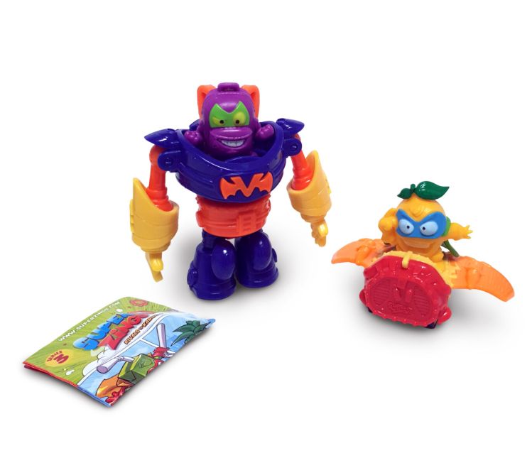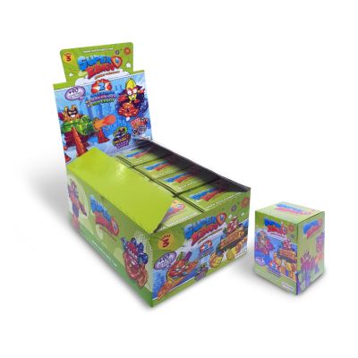 Seria 3 SuperZings contine peste 90 de figurine SuperZings de colectionat! SuperZings sunt obiecte obisnuite care se transforma in super eroi si super raufacatori. Acest pachet aduce in colectia ta un super robot si un super slider! Noua serie SuperZings iti aduce 6 super sliderele diferite de colectionat, fiecare in doua culori diferite! Super sliderul prinde viteza atunci cand este tras inapoi si apoi lansat pe rampa! Exista super slidere dedicate eroilor si super slidere dedicate super raufacatorilor. Oare poti descoperi super exclusivul slider auriu? Este cel mai ravnit vehicul din orasul Kaboom! Orasul Kaboom este invadat de super roboti puternici care lanseaza cele mai incredibile atacuri. Twister Crack distruge totul din jur cu mainile sale puternice care se invart! Iron Punch zdrobeste chiar si cel mai puternic material cu pumnii sai din otel. Spider Canoon are o precizie extraordinara cand isi ataca inamicii cu bilele sale din panza de paianjen. Rolling Hammer matura totul din calea sa cu mainile ciocan. Cine va castiga batalia finala? Cei 4 super roboti de colectionat vin in 2 culori diferite. Contine 1 super slider, 1 super robot, 2 figurine, 1 poster de colectibilitate.