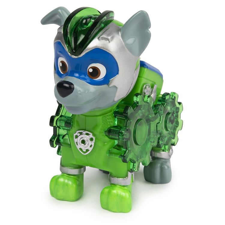 Nu exista misiune pe care catelusii sa nu o poata infrunta! Acum va puteti alatura Catelusilor din Patrula catelusilor intr-o misiune de salvare! Acum toti Catelusii sunt plini de energie! Apasati butonul de pe rucsac pentru a le activa functiile de iluminat - detaliile transparente ale uniformelor lumineaza, la fel ca in Patrula catelusilor, seria TV ChargedUp. In pachet se regaseste o figurina luminoasa Patrula Catelusilor Rocky, 1 fisa cu instructiuni.