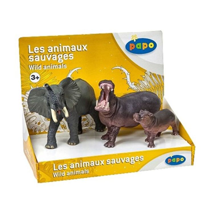 Set figurine animale salbatice, Elefant, Hipopotam si Hipopotam pui, Papo