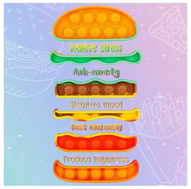 Jucarie antistres din silicon Flippy , pop it now and flip it hamburger portocaliu