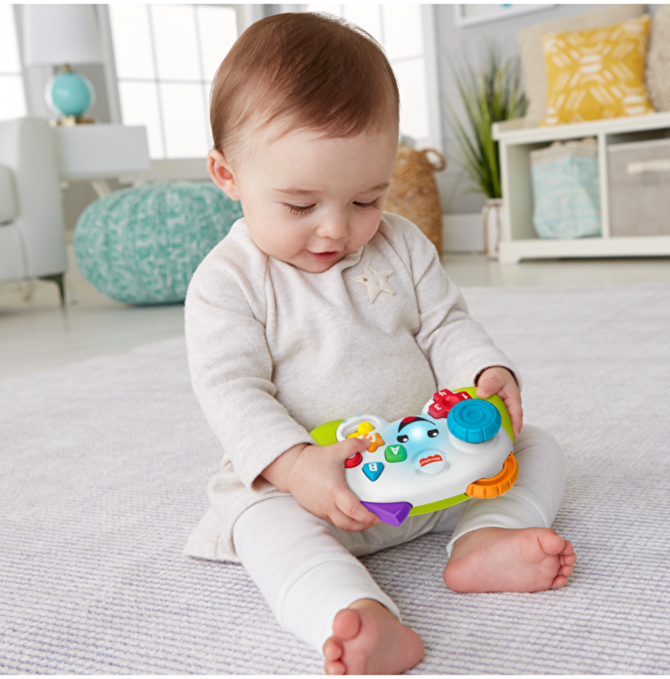 Bebelusul tau poate invata practic cu acest controller de jocuri de la Laugh & Learn, care are doua moduri de joc si o multime de activitati pe care o sa le adore! Pe masura ce micii jucatori misca joystick-ul si apasa butoanele ABCD sau tastele numerice, vor auzi melodii, sunete si fraze interesante care introduc numere, forme, culori si multe altele!