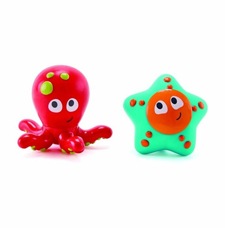 Aceste dragute caracatita si stea de mare au un secret nebanuit! Daca le umpleti cu apa si le strangeti, vor stropi cu apa. Aduce distractie stralucitoare in timpul baii! Strangeti jucariile pentru a elibera aerul din interior si umpleti cu apa. Aduceti-le la suprafata si strangeti din nou si apa se va pulveriza afara. Desurubati capul caracatitei si fata stelutei de mare pentru a le curata. Jucarii de baie din silicon si ABS Cu ajutorul ventuzele de pe steluta de mare puteti sa o lipiti de suprafete netede.