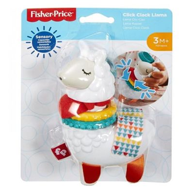 Fisher-Price Click Clack Llama are picioare din material moale, o bandana draguta. Intoarceti capul pentru sunete sclipitoare amuzante. Agitati pentru a auzi 2 inele stranse impreuna. Cucu bau! Ridicati saua pentru a dezvalui cactusul ascuns.
