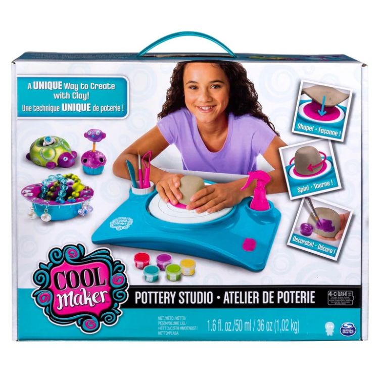 Asemenea mesterilor olari, creeaza, modeleaza si decoreaza vase folosind lut care se usuca! Descopera arta olaritului! Modeleaza un vas, sculpteaza-l, picteaza-ti creatia si asteapta sa se intareasca. Gata, ai un vas doar al tau, care sigur va atrage privirile tuturor! Continut set: atelier de olarit; sticluta cu atomizor; suport de lucru; 900 grame pasta de lut; pensula; 2 unelte pentru sculptat; 2 dispozitive de fixare; 2 discuri; 2 perechi de manusi de cauciuc; 10 recipiente cu vopsea; 1 manual cu instructiuni.