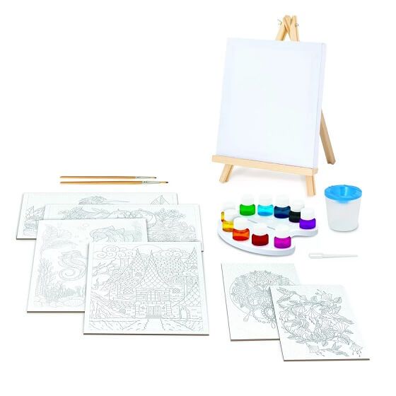 Cu Atelierul de Pictura Aquarelle te poti simti un adevarat artist Cu acest set patrundeti in lumea artei petreceti placut si productiv timpul liber. Set perfect pentru oricine indiferent de varsta nivel de experienta sau calificare si poate fi utilizat atat acasa cat si la scoala. Creatiile finale pe panzele din set vor constitui un cadou minunat pentru cei dragi sau un element de decor unic Setul contine 1 paleta 10 culori de acuarela 1 pipeta 6 cartonase pentru desen 1 panza pentru desen 2 pensule 1 sevalet din lemn 1 paharut pentru curatarea pensulelor si 1 manual de instructiuni. Valorile dezvoltate Indemanarea Concentrarea Rabdarea Coordonarea mana-ochi Creativitatea Atentia. Varsta recomandata 7 .