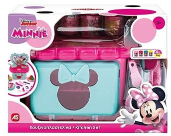 Pentru toti iubitorii de gatit AS Dough a creat cea mai colorata bucatarie Minnie Impreuna cu Minnie copilul poate crea cele mai delicioase bucate de plastilina. Pregateste placintele torturi dulciuri si bucate delicioase Setul include 1 bucatarie din plastic 4 borcanase de plastilina 200 g in total si multe ustensile de plastic tigaie castron spatula furculita cutit 2 farfurii 6 forme si 2 tavi. Setul este un cadou minunat pentru copii care iubesc atat gatitul cat si libertatea de a crea produse din imaginatie. Plastilina AS este o pasta modelatoare non-toxica pe baza de faina de grau pentru joc creativ in siguranta Recomandata pentru copiii de la 3 ani.Specificatii