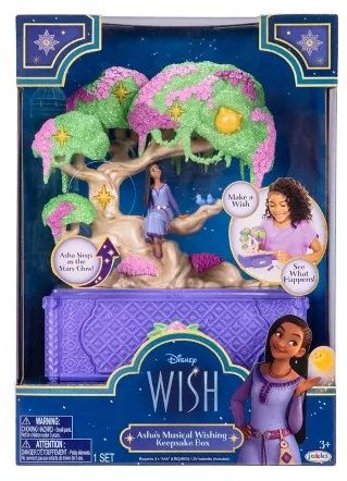 Animatia Wish produsa de studiourile Walt Disney este o comedie muzicala care invita publicul in regatul magic Rosas unde Asha o idealista isteata isi pune o dorinta atat de puternica incat ii este indeplinita de o forta cosmica o mica minge de energie numita Star. Asha si Star il infrunta pe suveranul din Rosas Regele Magnifico cu scopul de a-si salva comunitatea si pentru a dovedi ca atunci cand vointa unui om curajos se uneste cu magia stelelor se pot intampla lucruri extraordinare. Adu acasa magia filmului Disney Wish Copacul dorintelor din film este reprezentat sub forma unei cutii de bijuterii cu lumini si sunete. Varsta recomandata 3Specificatii