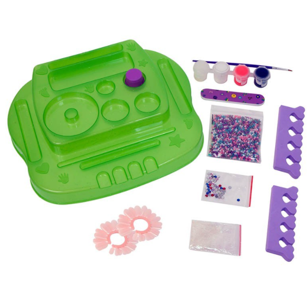 Poti sa-ti pui unghii false chiar si la picioare! Te folosesti de suportul pentru degete, inclus in setul Color Chic - Mega trusa de manichiura si ai nu doar o manechiura perfecta, ci si o pedichiura asemenea. Setul contine urmatoarele: unghii false, abtibilduri decorative, adeziv, vopsea, lipici pentru strasuri, suport, sclipici, dozator pentru sclipici, pila, pensula, strasuri, suporturi pentru degete, margelute, sabloane, abtibilduri fosforescente.