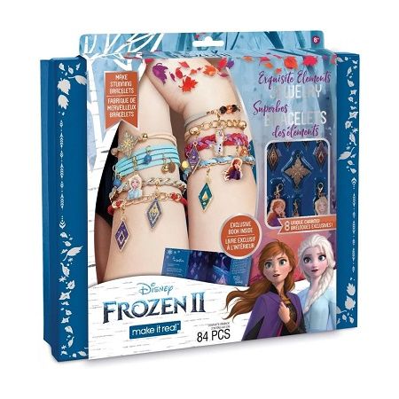 Acest kit de bratari le indruma pe tinerele fete sa-si creeze propriile bijuterii Juicy Couture - Disney Frozen 2 la moda creand bratari indraznete si frumoase pe care vor fi mandri sa le arate Caracteristici - Kitul include tot ce este necesar pentru a crea 8 bratari uimitoare 8 talismane Frozen 6 fire din piele ecologica 2 cleme 2 cleme pentru prindere 4 prinderi pentru panglica 6 inele 2 ace 3 lanturi 7 talismane diferite 3 talismane banut 39 margele de diferite culori instructiuni. In plus este nevoie de foarfeca lipici banda adeziva cleste nu sunt incluse in set . - Jucariile creative sunt cadouri grozave pentru fete. Acestea le ajuta sa-si dezvolte abilitatile de care au nevoie pentru a avea succes ca viitori designeri si creatori de bijuterii. - Crearea lanturilor si bratarilor Juicy Couture le ajuta pe fete sa-si dezvolte abilitatile motorii fine vizuale si cognitive totul in timp ce se distreaza si se exprima. Avertizare Acest produs poate contine piese mici din cauciuc. In cazul putin probabil al inghitirii unor astfel de piese consultati de urgenta un specialist. Produsul este nou si comercializat in ambalajul original al producatorului. Imaginile de pe site au caracter informativ. Ambalajul trebuie indepartat recuperat si aruncat de catre un adult inainte de a se da spre utilizare copilului. Nu lasati ambalajele produselor la indemana copiilor. Se recomanda utilizarea produsului sub supravegherea unui adult. Produsul poate contine piese mici care se pot inghiti sau inhala de cei mici existand pericolul de sufocare sau nu este potrivita copiilor mai mici de 3 ani. Contine coarda lunga. Pericol de strangulare. Pastrati instructiunile si etichetele pentru referinte viitoare. Pastrati produsul departe de foc si nu il lasati in preajma temperaturilor ridicate si a umiditatii. Nerecomandat copiilor cu varsta mai mica de 8 aniSpecificatii