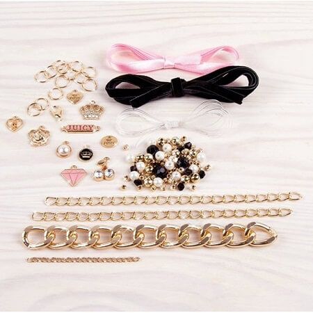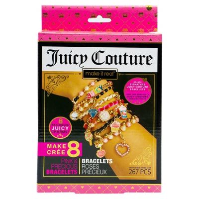 Acest kit de bratari le indruma pe tinerele fete sa-si creeze propriile bijuterii Juicy la moda creand bratari indraznete si frumoase pe care vor fi mandri sa le arate Caracteristici - Kitul include 4 fire colorate 20 metri in total 1 fir elastic transparent 2 metri 2 lanturi aurii 26 talismane litere 66 margele litere 309 margele Heishi discuri 150 margele fatetate 4 inele pentru prindere manual de utilizare.. In plus este nevoie de foarfeca lipici sau oja transparenta ce nu sunt incluse in set. - Jucariile creative sunt cadouri grozave pentru fete. Acestea le ajuta sa-si dezvolte abilitatile de care au nevoie pentru a avea succes ca viitori designeri si creatori de bijuterii. - Crearea bratarilor Juicy Couture le ajuta pe fete sa-si dezvolte abilitatile motorii fine vizuale si cognitive totul in timp ce se distreaza si se exprima. Avertizare Acest produs poate contine piese mici din cauciuc. In cazul putin probabil al inghitirii unor astfel de piese consultati de urgenta un specialist. Produsul este nou si comercializat in ambalajul original al producatorului. Imaginile de pe site au caracter informativ. Nuanta tonul si intensitatea culorii pot varia in functie de monitor. Ambalajul trebuie indepartat recuperat si aruncat de catre un adult inainte de a se da spre utilizare copilului. Nu lasati ambalajele produselor la indemana copiilor. Se recomanda utilizarea produsului sub supravegherea unui adult. Produsul poate contine piese mici care se pot inghiti sau inhala de cei mici existand pericolul de sufocare sau nu este potrivita copiilor mai mici de 3 ani. Contine coarda lunga. Pericol de strangulare. Pastrati instructiunile si etichetele pentru referinte viitoare. Pastrati produsul departe de foc si nu il lasati in preajma temperaturilor ridicate si a umiditatii. Nerecomandat copiilor cu varsta mai mica de 8 aniSpecificatii