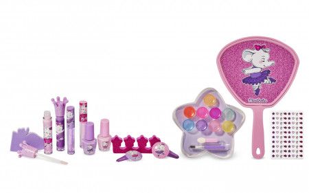 Setul suprem pentru iubitorii de machiaj si culoarea roz Aceasta cutiuta cu un frumos elefant in fusta de balet include patru luciuri de buze doua lacuri de unghii o pila de unghii un separator de pedichiura o paleta in forma de stea cu noua farduri de pleoape stralucitoare si aplicatoare doua agrafe o oglinda XXL si autocolante pentru unghii. Ingrediente Oja Pe Baza De Apa Apa Stiren Copolimeri Acrilati Acid Poliacrilic Propilenglicol Silica Fenoxietanol Parfum Limonen Linalol Citronelol Colorant Ci 77742 Ci 77891 Ci 19140 Ci 15850. Martinelia este un brand care face parte din grupul Aquarius Cosmetic SL principalul distribuitor de parfumuri si cosmetice in Spania inca din anul 1995. in ziua de astazi brandul se gaseste in toata lumea nu doar in Spania. Produsele brandului la Martinelia pot fi recunoscute cu usurinta datorita ambalajului unic si jucaus. in oferta brandului Martinelia veti gasi seturi de cadouri accesorii pentru par popularele balsamuri de buze aromate si alte accesorii care vin in ambalaje haioase. Copiii vor fi incantati de produse precum setul decorativ in forma de ursulet peria de par unicorn sau periuta de dinti cu sirene. Martinelia ofera pentru cei mici o gama larga de produse distractive si inovatoare in toate culorile curcubeului. Seturi de machiaj rujuri si tot felul de produse si accesorii concepute pentru a tine pasul cu ultimele tendinte. Produsele sunt sigure si prietenoase cu mediul fiind special proiectate pentru a putea fi folosite de copii.Specificatii