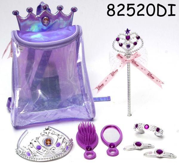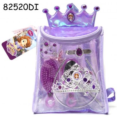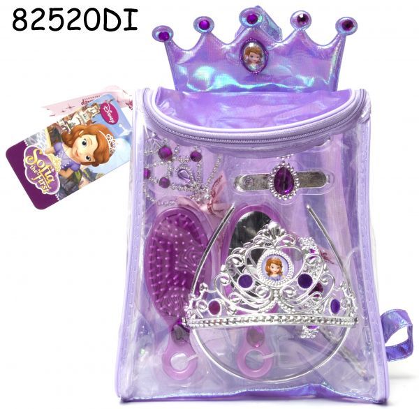 Orice fetita isi doreste sa fie o printesa precum Sofia. Acest rucsac contine o multime de accesorii frumoase care fac ca orice fetita sa devina o mica printesa. Rucsacul are culoarea mov este realizat dintr-un material reflectorizant si are imaginea Printesei Sofia. Rucsacul include o diadema argintie cu imaginea Printesei Sofia oglinda pieptan agrafe de par cu pietre mov bratara cu pietre albe si mov bagheta argintie cu pietre mov si albe panglica cu logo-ul Disney. Continut rucsac diadema bagheta perie oglinda bratara si 2 agrafe de par. Varsta 3 Atentie Contraindicat copiilor mai mici de 3 ani. Jucaria produsul poate contine piese mici care se pot inghiti sau inhala existand pericolul de sufocare. Nu lasati ambalajele jucariilor produselor la indemana copiilor. Indepartati orice ambalaj al jucariei produsului inainte de a da jucaria produsul copilului. Va rugam sa supravegheati copilul in timp ce se joaca foloseste acest produs. Pastrati instructiunile si etichetele pentru referinte viitoare. Pastrati jucaria produsul departe de foc feriti jucaria produsul de temperaturi ridicate si umiditate.Specificatii