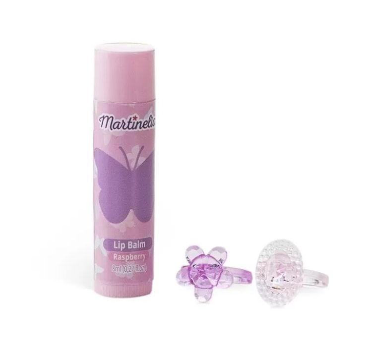 Simtiti magia fluturilor cu acest kit care include un balsam de buze cu aroma de zmeura si 2 inele din plastic cu sclipici in cele mai fantastice formeSpecificatii