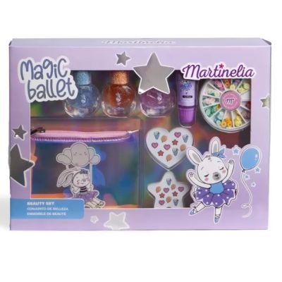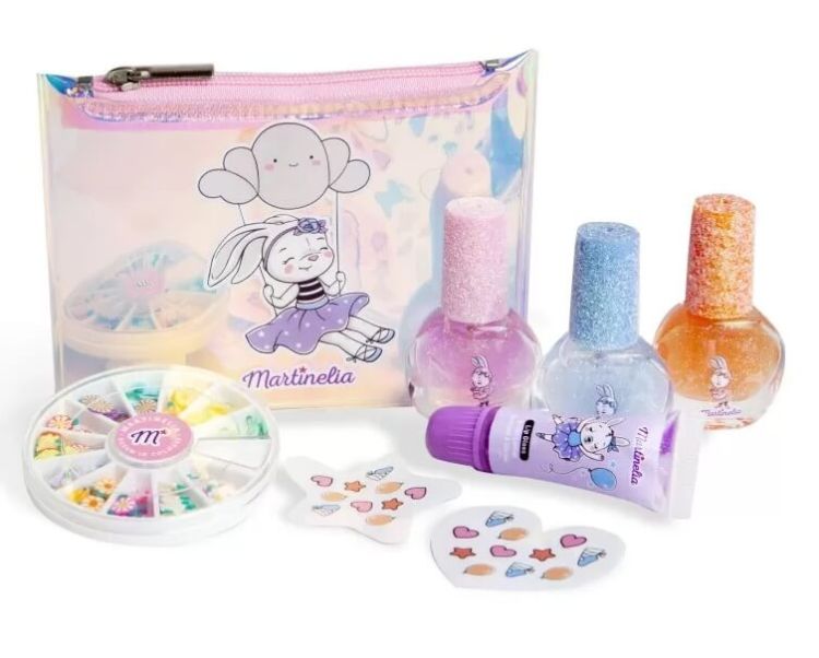Setul de machiaj cu tot ce ai nevoie pentru o sedinta de frumusete acasa cu un elefant frumos intr-o fusta de balet. Pachetul contine 3 lacuri de unghii cu sclipici 1 luciu de buze accesorii unghii autocolante 1 portofel. Ingrediente Luciu De Buze Ulei Mineral Polibutena Copolimer Stiren Izopren Hidrogenat Octildodecanol Polietilena Tereftalata Polimetil Metacrilat Silice Dimetil Sililat Fenoxietanol Etilhexilglicerina Acetat De Tocoferil Parfum. Poate Contine Ci 45410 2. Coloranti Ci 42090 2. Ingrediente Lac De Unghii Apa Alcool Polivinilic Fenoxietanol Acid Poliacrilic Silice Carbonat De Sodiu Ethilhexilglicerina Polietilena Tereftalata Polimetil Metacrilat Copolimer Stiren Acrilat Propilen Glicol Caprilil Glicol. Poate Contine 15850 1. Coloranti 15850 Ci 42090 Ci 19140 1. Martinelia este un brand care face parte din grupul Aquarius Cosmetic SL principalul distribuitor de parfumuri si cosmetice in Spania inca din anul 1995. in ziua de astazi brandul se gaseste in toata lumea nu doar in Spania. Produsele brandului la Martinelia pot fi recunoscute cu usurinta datorita ambalajului unic si jucaus. in oferta brandului Martinelia veti gasi seturi de cadouri accesorii pentru par popularele balsamuri de buze aromate si alte accesorii care vin in ambalaje haioase. Copiii vor fi incantati de produse precum setul decorativ in forma de ursulet peria de par unicorn sau periuta de dinti cu sirene. Martinelia ofera pentru cei mici o gama larga de produse distractive si inovatoare in toate culorile curcubeului. Seturi de machiaj rujuri si tot felul de produse si accesorii concepute pentru a tine pasul cu ultimele tendinte. Produsele sunt sigure si prietenoase cu mediul fiind special proiectate pentru a putea fi folosite de copii.Specificatii