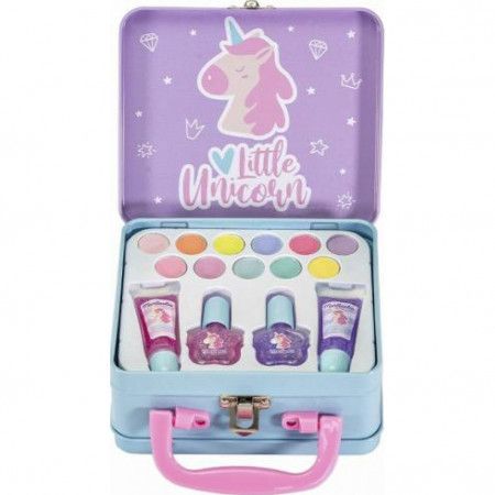 Este posibil sa simti magia unicornului cu acest minunat kit de frumusete Contine 11 farduri de ochi 2 lacuri de unghii cu sclipici si 2 rujuri cu sclipici. Total irezistibil Ingrediente Lac De Unghii Apa Acrylonitrile Styrene Acrylate Acid Poliacrilic Dioxid De Siliciu Fenoxietanol Coloranti Fard De Pleoape Talc Dioxid De Siliciu Stearat De Magneziu Polizobutilen Fenoxietanol Etilhexil Palmitat Dimeticon Coloranti. Balsam De Buze Etilhexil Palmitat Ozocherita Polizobutilen Parafina Silic Dimetil Sililat Fenoxietanol Polietilen Tereftalat Parfum Coloranti. Martinelia este un brand care face parte din grupul Aquarius Cosmetic SL principalul distribuitor de parfumuri si cosmetice in Spania inca din anul 1995. in ziua de astazi brandul se gaseste in toata lumea nu doar in Spania. Produsele brandului la Martinelia pot fi recunoscute cu usurinta datorita ambalajului unic si jucaus. in oferta brandului Martinelia veti gasi seturi de cadouri accesorii pentru par popularele balsamuri de buze aromate si alte accesorii care vin in ambalaje haioase. Copiii vor fi incantati de produse precum setul decorativ in forma de ursulet peria de par unicorn sau periuta de dinti cu sirene. Martinelia ofera pentru cei mici o gama larga de produse distractive si inovatoare in toate culorile curcubeului. Seturi de machiaj rujuri si tot felul de produse si accesorii concepute pentru a tine pasul cu ultimele tendinte. Produsele sunt sigure si prietenoase cu mediul fiind special proiectate pentru a putea fi folosite de copii.Specificatii