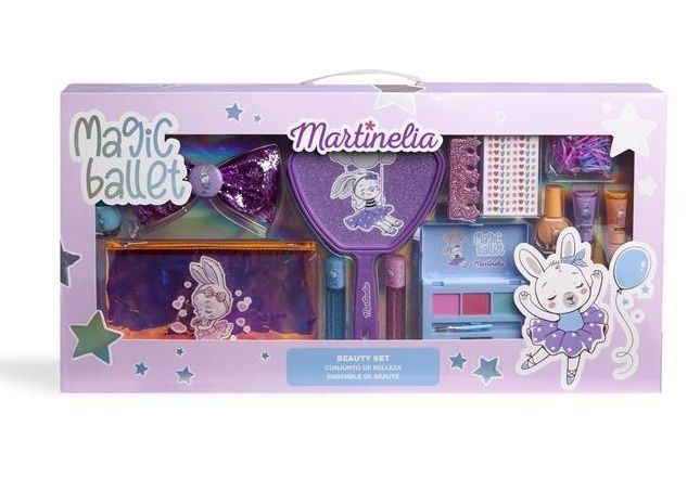 Set Mega Beauty Martinelia Magic Ballet set pentru copii care include 2 luciu de buze 2 balsamuri de buze 1 funda 2 lacuri de unghii solubile in apa 1 separator de degete 1 oglinda 1 gentuta pentru cosmetice o trusa de farduri de ochi si autocolante. Martinelia este un brand care face parte din grupul Aquarius Cosmetic SL principalul distribuitor de parfumuri si cosmetice in Spania inca din anul 1995. n ziua de astazi brandul se gaseste in toata lumea nu doar in Spania. Produsele brandului la Martinelia pot fi recunoscute cu usurinta datorita ambalajului unic si jucaus. n oferta brandului Martinelia veti gasi seturi de cadouri accesorii pentru par popularele balsamuri de buze aromate si alte accesorii care vin in ambalaje haioase. Copiii vor fi incantati de produse precum setul decorativ in forma de ursulet peria de par unicorn sau periuta de dinti cu sirene. Martinelia ofera pentru cei mici o gama larga de produse distractive si inovatoare in toate culorile curcubeului. Seturi de machiaj rujuri si tot felul de produse si accesorii concepute pentru a tine pasul cu ultimele tendinte. Produsele sunt sigure si prietenoase cu mediul fiind special proiectate pentru a putea fi folosite de copii.Specificatii