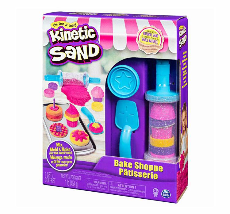 Foloseste facaletul stralucitor pentru a intinde nisipul kinetic, stampileaza cu unul din modelele de biscuiti sau cu o glazura decorativa si foloseste formele pentru a crea briose.