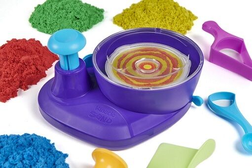 In premiera rotiti nisipul pentru a crea in mod magic o frumoasa arta de nisip. Singura trusa de activitati care iti permite sa faci sa CURGA NISIPUL pentru a crea in mod magic ARTA PE NISIP. Roteste stivuieste si foloseste instrumentele pentru a obtine efecte hipnotizante. Cea mai practica abordare a jocului de arta cu nisip cinetic setul de joaca Swirl N Surprise include un total de un kilogram de nisip in culorile rosu violet verde si galben.Specificatii