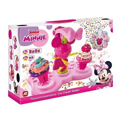 Pentru toti iubitorii de inghetata AS Dough a creat cea mai colorata masina de inghetata Iar impreuna cu eroina Minnie copilul poate crea cea mai delicioasa inghetata de plastilina. Nu ai nevoie de lapte zahar sau congelator ci doar de masina de inghetata Minnie plastilina si multa imaginatie Setul include 2 borcanase de plastilina de 28 g 4 borcanase de plastilina de 56 g forme pe capac si multe alte accesorii pentru a servi cea mai buna inghetata colorata Valori dezvoltate Dezvoltare senzoriala Concentrarea Creativitatea Atentia Imaginatia. Recomandata pentru copiii de la 3 ani.Specificatii