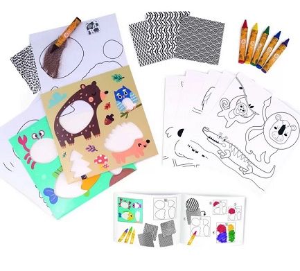 Alege sabloanele si culorile preferate si coloreaza zonele relevante folosind creioane cerate. Desenele colorate pot fi apoi amplasate intr-unul dintre plicurile ilustrate pentru a crea o opera de arta unica. Setul contine 2 plicuri ilustrate cu contururile relevante ale desenului 5 sabloane pentru desen 1 fila cu modele 6 creioane cerate si un manual de instructiuni detaliat.Specificatii