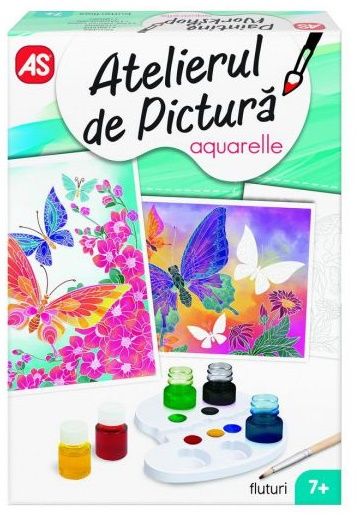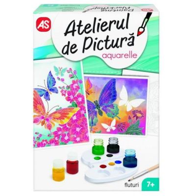 Cu Atelierul de Pictura Aquarelle Mini te poti simti un adevarat artist Setul ofera posibilitatea de a patrunde in lumea artei de a petrece placut si productiv timpul liber. Setul este perfect pentru oricine indiferent de varsta nivel de experienta sau calificare. Acesta poate fi utilizat atat acasa cat si la scoala. Uneltele si vopselele din set va vor insoti in minunata lume a culorilor iar creatiile finale pe panzele din set vor constitui un cadou minunat pentru cei dragi sau un element de decor unic Tematica setului Fluturi. Setul contine 1 paleta 5 culori de acuarele 3 cartonase pentru desen 1 panza 1 pensula si 1 manual de instructiuni. Valorile dezvoltate Indemanarea Concentrarea Rabdarea Coordonarea mana-ochi Creativitatea Atentia. Varsta recomandata 7 .Specificatii