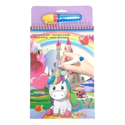 Picteaza cu apa - creaturi magice contine 6 imagini reutilizabile marker cu apa. Pentru a colora se umple markerul cu apa apoi se coloreaza suprafetele ca si cu o pensula fara sa se apese sau insiste in acelasi loc. Culorile vor aparea iar cand foaia este ulterior uscata devine din nou alba si se poate colora din nou. Este un articol ideal in calatorii nu pateaza si nu murdareste.Specificatii
