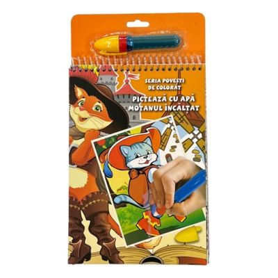 Picteaza cu apa - contine 6 imagini reutilizabile marker cu apa. Pentru a colora se umple markerul cu apa apoi se coloreaza suprafetele ca si cu o pensula fara sa se apese sau insiste in acelasi loc. Culorile vor aparea iar cand foaia este ulterior uscata devine din nou alba si se poate colora din nou. Este un articol ideal in calatorii nu pateaza si nu murdareste.Specificatii
