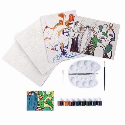 Opere de arta prind viata cu ajutorul culorilor de acuarela pe masura ce colorati sabloanele cu tehnica traditionala si cu tehnica cu ceara. Amestecuri si intensitati diferite ale culorilor va vor introduce in lumea minunata a desenului. Setul contine 2 sabloane semi-colorate pentru a practica tehnica conturului cu ceara 2 sabloane albe pentru a practica tehnica traditionala a acuarelelor 8 vopsele lichide de acuarela o paleta o pensula si un ghid cu instructiuni detaliate pentru colorat. Potrivit pentru copiii de la 6 ani.Specificatii
