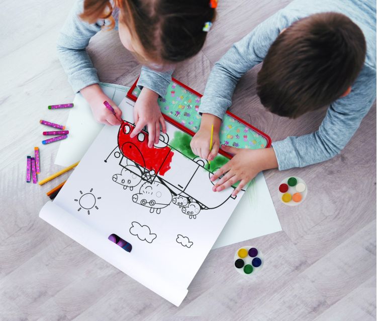 Setul pentru desen Giga Block 4 in 1 pune la dispozitia copilului 8 creioane cerate, 10 culori de acuarela, autocolante, 1 pensula si sabloane cu eroina preferata Peppa Pig. Cu acest set, copilul poate desena, decora, colora si crea adevarate opere de arta, beneficiind de un joc relaxant si creativ. Prin desen, copilul va putea invata culorile si nuantele, formele si notiunea de marimi. Setul reprezinta o idee de cadou perfect pentru fiecare copil care iubeste distractia creativa. Valori dezvoltate: dexteritatea, creativitatea, coordonarea mana-ochi, capacitatea de concentrare si rabdarea. Potrivit pentru copiii de la 3 ani.