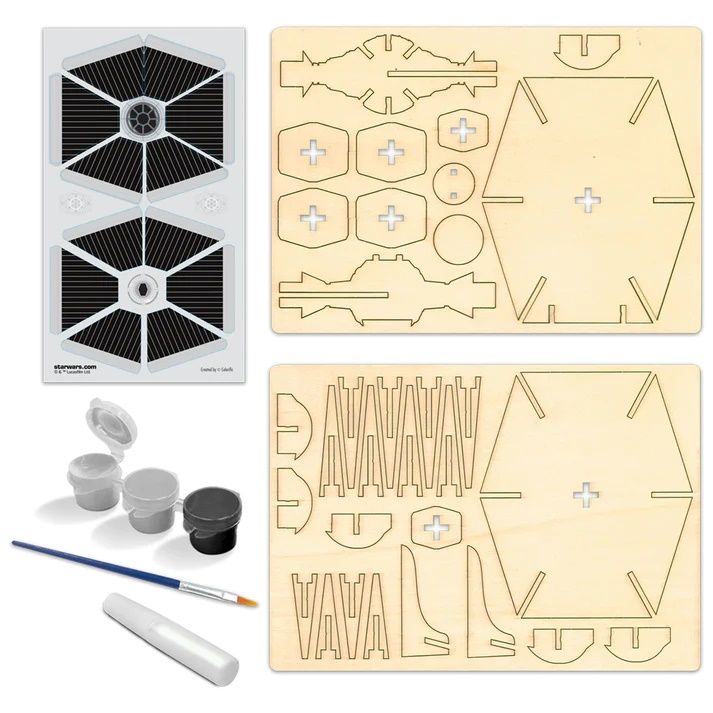 Macheta de asamblat Star Wars Tie Fighter cu 30 piese din lemn vopsea pensula si adeziv inclus