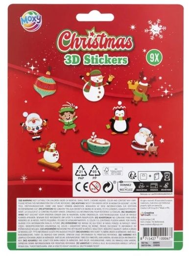 Aceste abtibilduri sunt ideale pentru a stimula imaginatia copiilor si a-i incuraja sa creeze propriile decoruri de Craciun. Fie ca sunt utilizate in activitati artizanale, pentru a personaliza obiecte sau doar pentru distractie, abtibildurile 3D vor adauga un aspect vesel si festiv oricarei ocazii. Perfecte pentru un cadou sau pentru activitati in familie! Numar autocolante per foaie: 9 Varsta recomandata: 3 ani+ Atentie! Nu este recomandat copiilor sub 3 ani.
