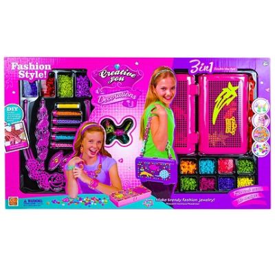 Viitorilor creatori de bijuterii le va placea sa monteze bratari sau alte accesorii sic cu acest set caruia ii lipseste doar inspiratia designerului Caracteristici - Setul 3 in 1 contine 2 bratari magice una asamblata cealalta trebuie montata 21 tipuri de margele ers colorate bilute stelute spirale fluturasi si floricele 1 papiota 1 pereche de cercei 1 colier 1 bratara 1 gentuta cu erse aplicatii. - Bratarile magice sunt un accesoriu dragut pentru orice tinuta a fetitelor si se pot transforma intr-un animalut jucarie. Pentru transformarea in jucarie sunt necesare simple rasuciri. Astfel animalul tau adorabil prinde viata Pentru montarea bratarii magice este schita inclusa. - Unele din margele au gaura pentru insirare pe fir dar si capat tip pioneza pentru decorare gentuta bratara colier sau cercei. - Copiii isi dezvolta dexteritatea creativitatea si se pot bucura de bratari si lantisoare create de ei insisi. - Setul este ambalat intr-o cutie colorata ideala pentru cadouri. - Jucaria este realizata din plastic de calitate non toxic. Lungime bratara 18 cm Lungime colier aproximativ 51 cm Lungime cercei 5. 5 cm Avertizare Produsul este nou si comercializat in ambalajul original al producatorului. Imaginile de pe site au caracter informativ. Produsul nu functioneaza cu baterii. Ambalajul trebuie indepartat recuperat si aruncat de catre un adult inainte de a se da spre utilizare copilului. Nu lasati ambalajele produselor la indemana copiilor. Se recomanda utilizarea produsului sub supravegherea unui adult. Produsul poate contine piese mici care se pot inghiti sau inhala de cei mici existand pericolul de sufocare sau nu este potrivita copiilor mai mici de 3 ani. Pastrati instructiunile si etichetele pentru referinte viitoare. Pastrati produsul departe de foc si nu il lasati in preajma temperaturilor ridicate si a umiditatii. Nerecomandat copiilor cu varsta mai mica de 5 ani