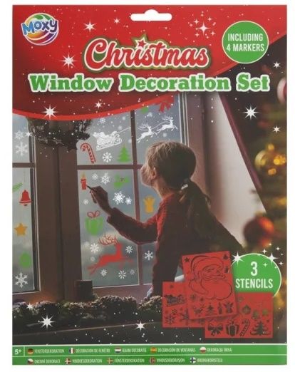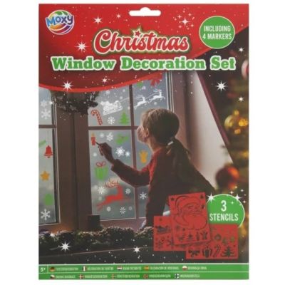 Set de decoratiuni pentru ferestre cu markere si sabloane tematica Craciun