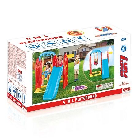 Aceasta este o jucarie care dezvolta copilului curajul coordonarea si atentia si alunga teama de inaltime. Caracteristici - Centru de joaca contine un tobogan scari un leagan convertibil cos baschet confectionate din plastic de calitate viu colorat. - Centrul de joaca include posibilitatea a 4 activitati jocul cu mingea la cos baschet gimnastica la bara tobogan leagan. - Setul este usor de montat. - Mingea nu este inclusa in set. - Toboganul se poate monta la inaltime ajustabila in functie de varsta copilului. - Toboganul are protectii laterale inalte pentru siguranta este rezistent si sigur fiind confectionat dintr-un plastic de calitate. - Leaganul este dotat cu bara de protectie. - Centrul este ideal pentru a fi folosit in interior si exterior. - Greutate maxim admisa 30 kg. - Ambalaj cutie carton. - Nu este recomandat copiilor sub 24 luni. - Dimensiuni centru de joaca montat 123x156x170 cm. Avertizare Produsul este nou si comercializat in ambalajul original al producatorului. Imaginile de pe acest site au caracter informativ. Ambalajul trebuie indepartat recuperat si aruncat de catre un adult inainte de a se da spre utilizare copilului. Nu lasati ambalajele produselor la indemana copiilor. Se recomanda utilizarea produsului sub supravegherea unui adult. Produsul poate contine piese mici care se pot inghiti sau inhala de cei mici existand pericolul de sufocare sau nu este potrivita copiilor mai mici de 3 ani. Pastrati instructiunile si etichetele pentru referinte viitoare. Pastrati produsul departe de foc si nu il lasati in preajma temperaturilor ridicate si a umiditatii. Nerecomandat copiilor cu varsta mai mica de 3 aniSpecificatii